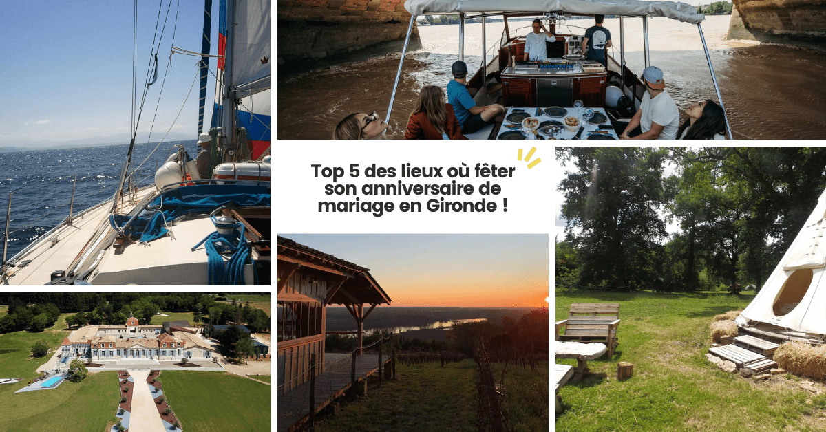 Nous sommes fiers de vous : vous fêtez une nouvelle année de mariage ! Pour célébrer de nouveau votre union comme il se doit, nous vous présentons cinq lieux ! De beaux endroits où fêter vos noces (encore) en amoureux, entre amis ou en famille, en Gironde, près de Bordeaux ! 💒